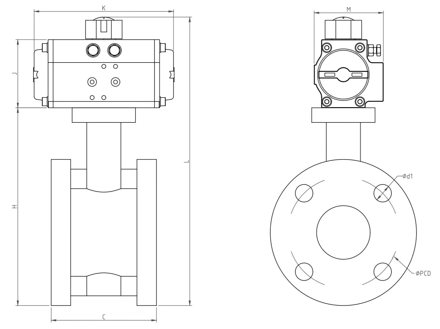 | DN | Actuator | C | H | ⌀PCD | n | ⌀d1 | J | K | L | M |