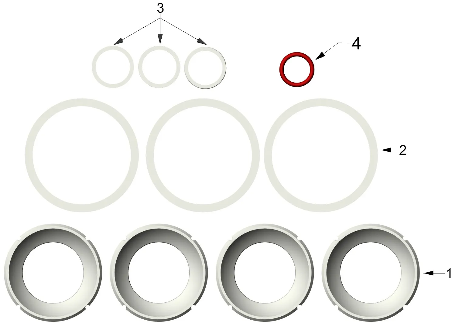 Reinforced PTFE (15% glass filled) seats to suit 3 way 316 Stainless Steel Ball Valves. Includes valve seats, washers and stem oring.