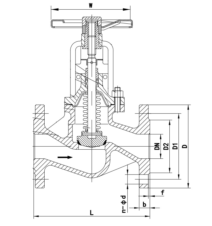 | N | D | D1 | D2 | b | n - ⌀d | L | f | W | ||||||||||
