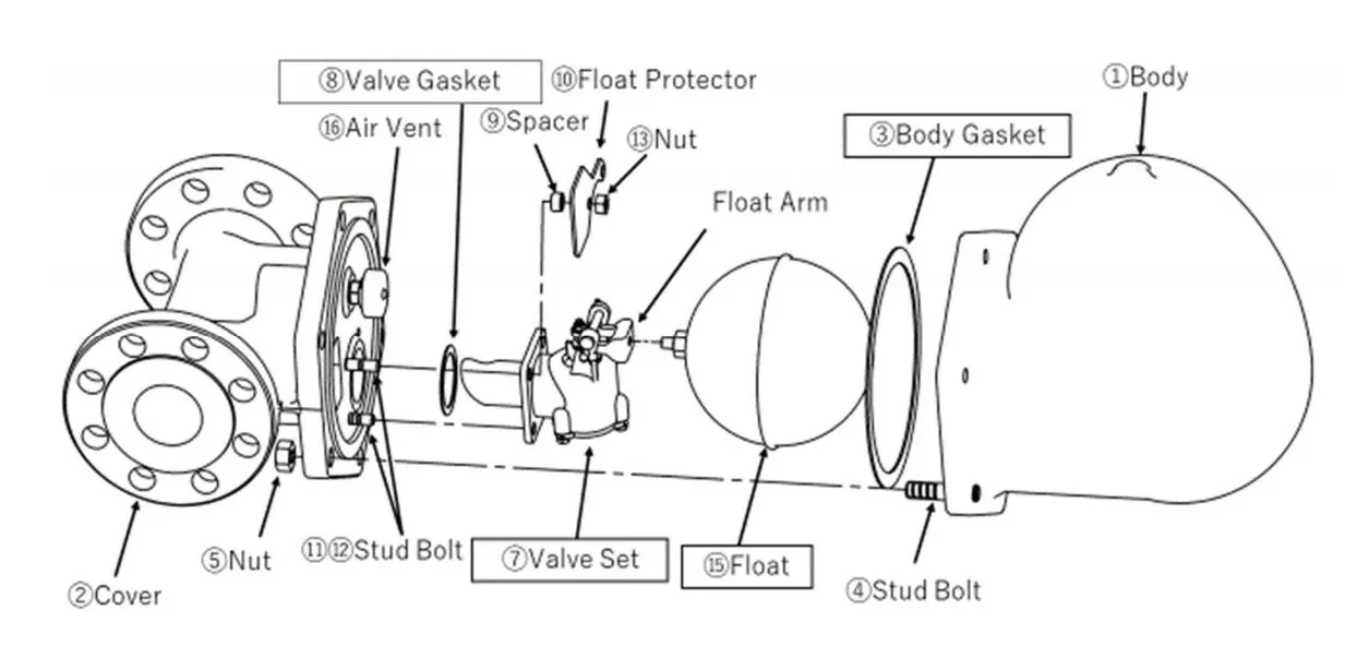 • Internal parts such as the valves, seats, air vents and floats are constructed from Stainless Steel, offering corrosion resistance and durability