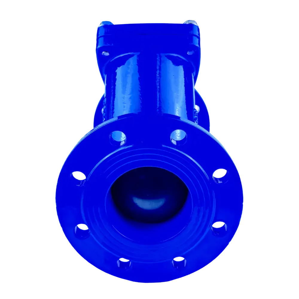 Fusion Bonded Epoxy coated Ductile Iron Ball Check Valve flanged to AS2129 Table E. Stainless Steel fasteners and NBR coated steel ball. Self Cleaning check valve ideal for applications where debris is present such as pump stations and sewerage which prevents other check valves been used. Minimum back pressure of 0.3 to 0.5 BAR (depending upon size) is needed for a complete seal. Full bore with low pressure drop across the valve. Silent operation with a removable bonnet for cleaing or chainging out the ball without dissassembly of the pipline. Can be installed either on a horizontal or vertical access.