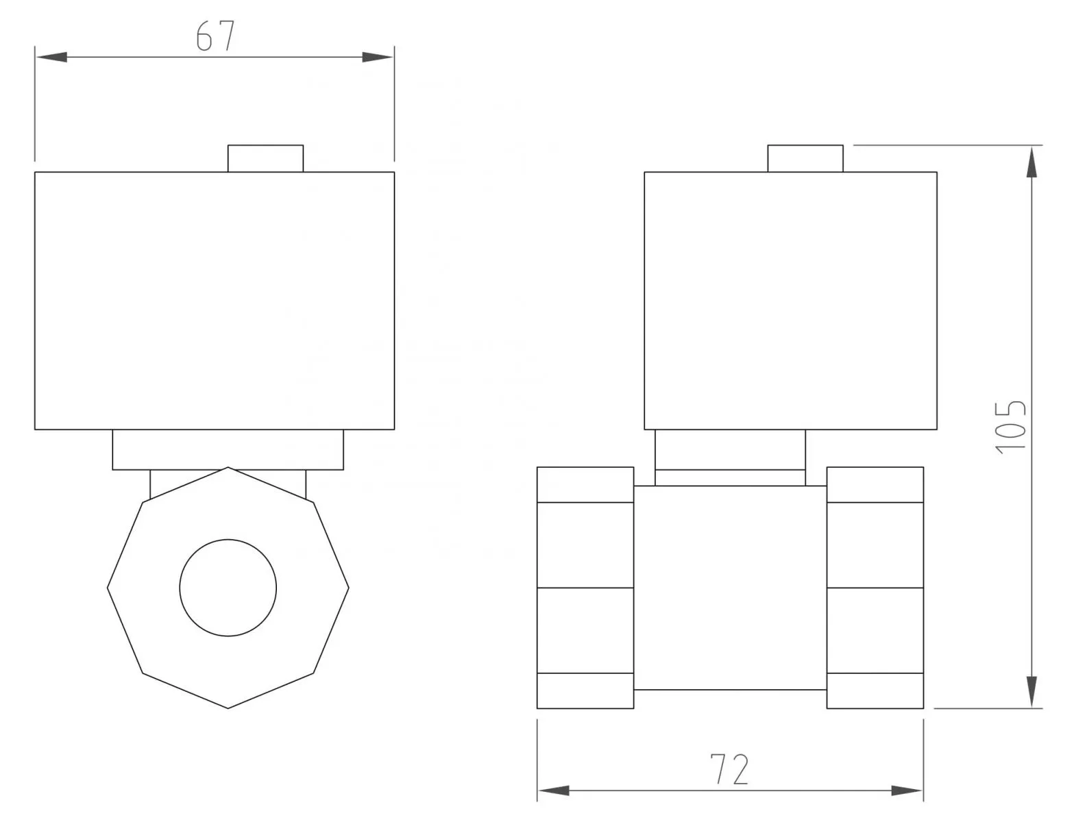 Before installation the line must be isolated and pressure removed. The valve itself has female parallel BSP threaded ends so it is best to put a male tapered BSP fitting into the valve ends. Thread tape or a sealant should be used to help the seal and also if dissimilar metals are used it will reduce dissimilar metal corrosion. The electric actuator has only two wires leading to it so effectively only has two states which are on or off.
