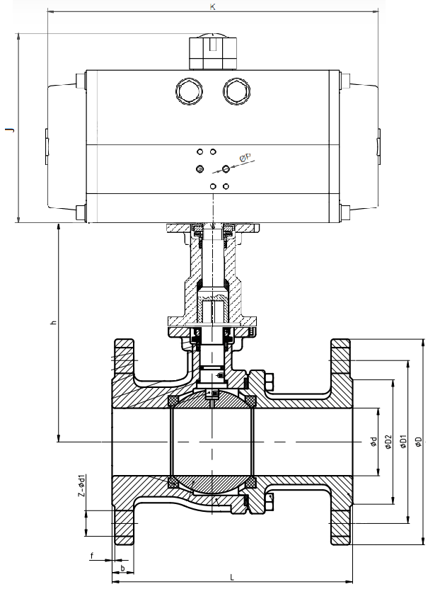 Part Number | Size (mm) | Actuator | Ød | L | f | b | Z-Ød1 | D | D1 | D2 | h | J | K | P |