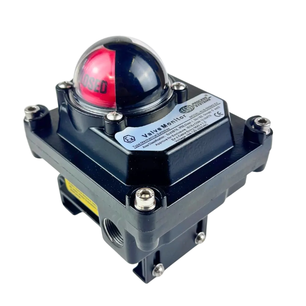 Our hazardous area limit switch box is designed to mount onto the top of pneumatic actuators to give position feedback. Two adjustable SPDT mechanical switches (one for open and one for closed) are wired into a terminal block. It also has termination for a solenoid valve so that a single multiple cable can be used. The solenoid can then be wired through the second conduit entry. The sight dome is colour coded for instant clarification of the valve position. Yellow for open and red for closed. Also available in 316 Stainless Steel upon request. Certificates available upon request.