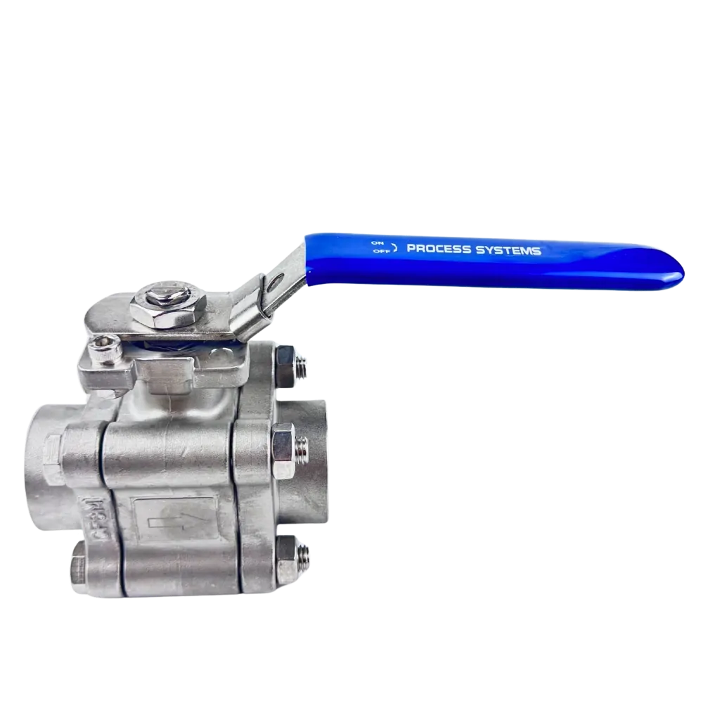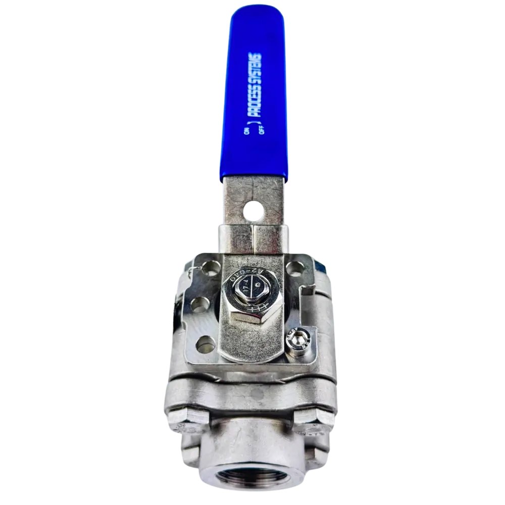 Full Bore 3 piece 2 way 316 Stainless Steel Ball Valve. ISO5211 mounting pad with Lockable Lever. Unidirectional with vent hole on upstream side. Self adjusting stem packing with blow out proof stem design. Leakage Classification ANSI/FCI 70-2, Class V. Constructed to ANSI B16.34.