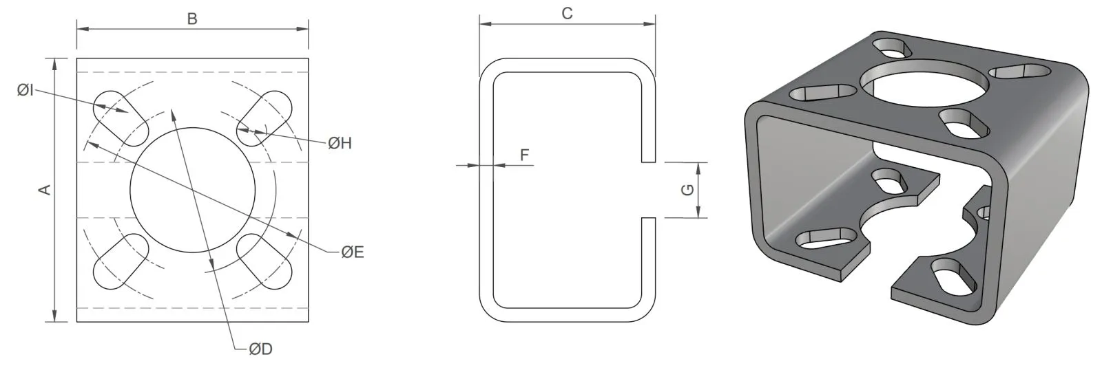 304 Stainless Steel Interface Bracket typically used to mount actuators onto ball and butterfly valves where direct coupling is not an option or not possible. For a reference table (measurements) on the ISO mounting interfaces please click here. These can be coupled with the our stainless steel drive dogs to allow actuator stand off or mounting where direct mount is not possible.