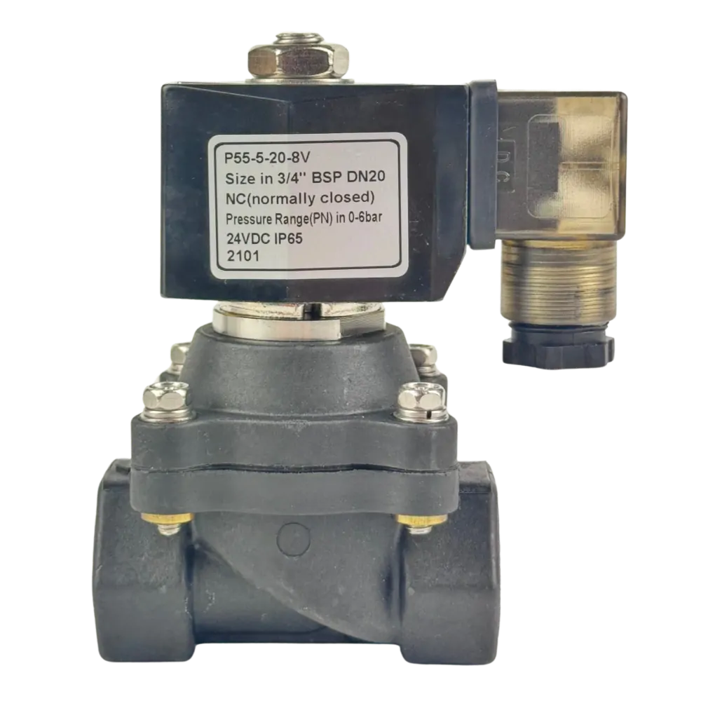 General purpose zero differential solenoid valve for general purpose applications. Glass reinforced nylon body for added strength and viton seals for chemical resistance. Normally closed (energise to open) and available in all voltages. Comes with coil (class F insulation) and DIN plug (IP65 protection). Ideal for tank drain, low head and irrigation applications. Threads conform to ISO 7.1 Sealing Threads.
