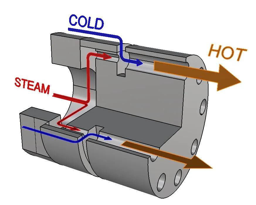 Direct steam injection heating systems are designed to inject steam directly into a product to be heated, usually tanks of water or process liquids. However if not designed and installed correctly, direct steam injection systems nearly always result in unacceptable noise and vibration. Historically, handmade sparge pipes were used to complete the task. Modern day technology has resulted in more compact, more efficient designs in various sizes that are easy to install and ensure quiet and efficient heating of the product. These are commonly reffered to as Noiselss Heaters, Steam Injectors or Silent Water Heaters (they are all the same thing).