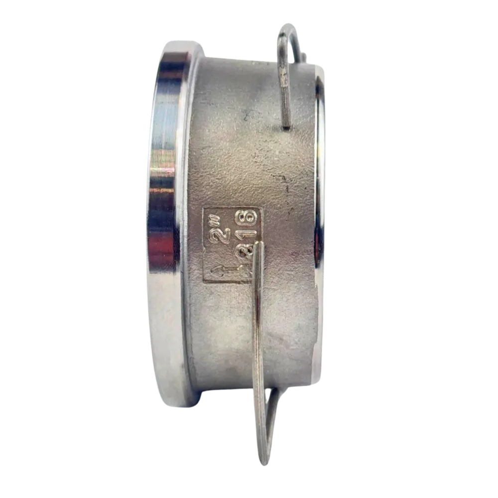 316 Stainless Steel Inline Wafer Single Disc Check Valve. Wafer design to suit ANSI 150/300, DIN PN16/25/40 & Table H (will also fit Table D & E in some sizes, see dimensions tab for flange compatibility). Face to face in accordance with DIN3202-K4. Spring loading allows this check valve to be installed on any angle.