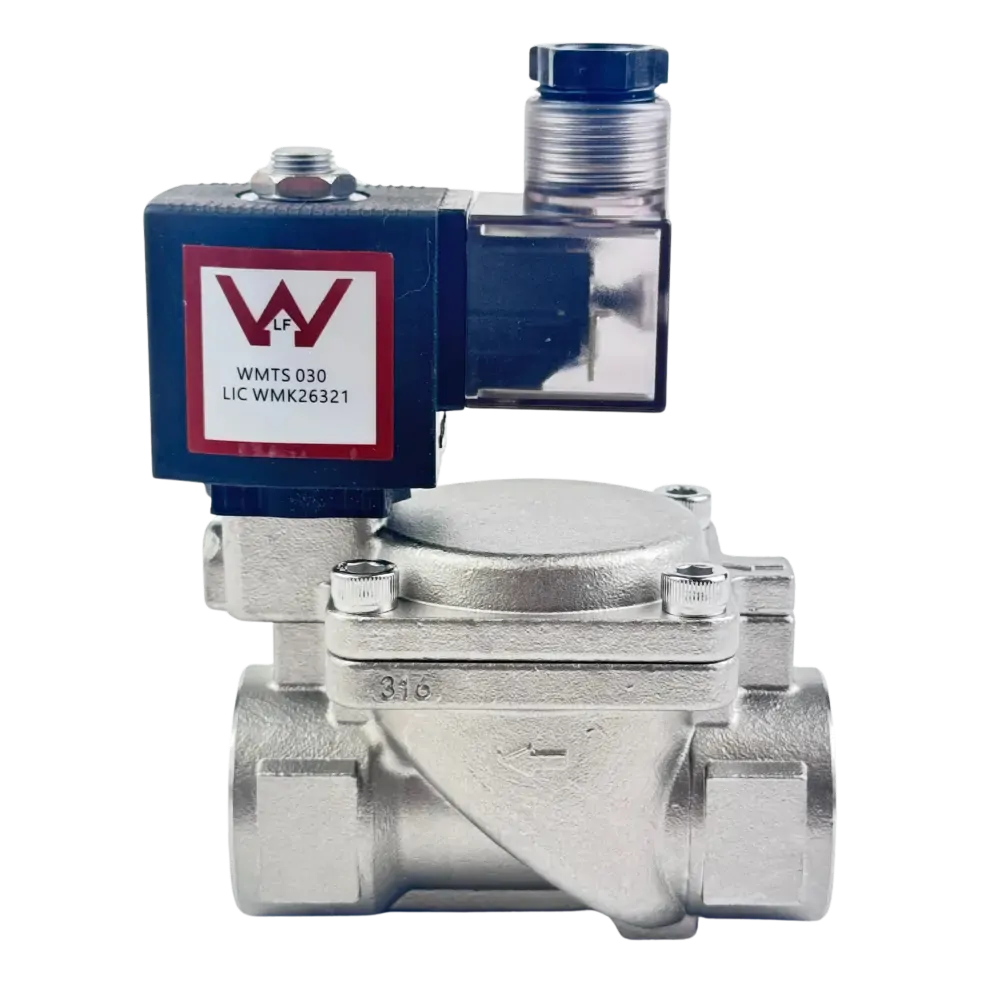 A 316 Stainless Steel Normally Closed (power to open) Watermark approved solenoid valve. Great for potable water or any application where watermark approval is required (mains water in Australia). Comes with IP65 weather proof LED illuminated din plug and coil. Has a low pressure differential required making it suitable for applications such as rain water switch over and has a soft close design. Watermark Approval Licence Number WMK 26321 approved to WMTS 030:2016 - Solenoid Valves.